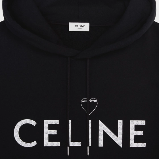 フード付きクルーネック、CELINE PARIS刻印入りストッパーと調節可能なストリング