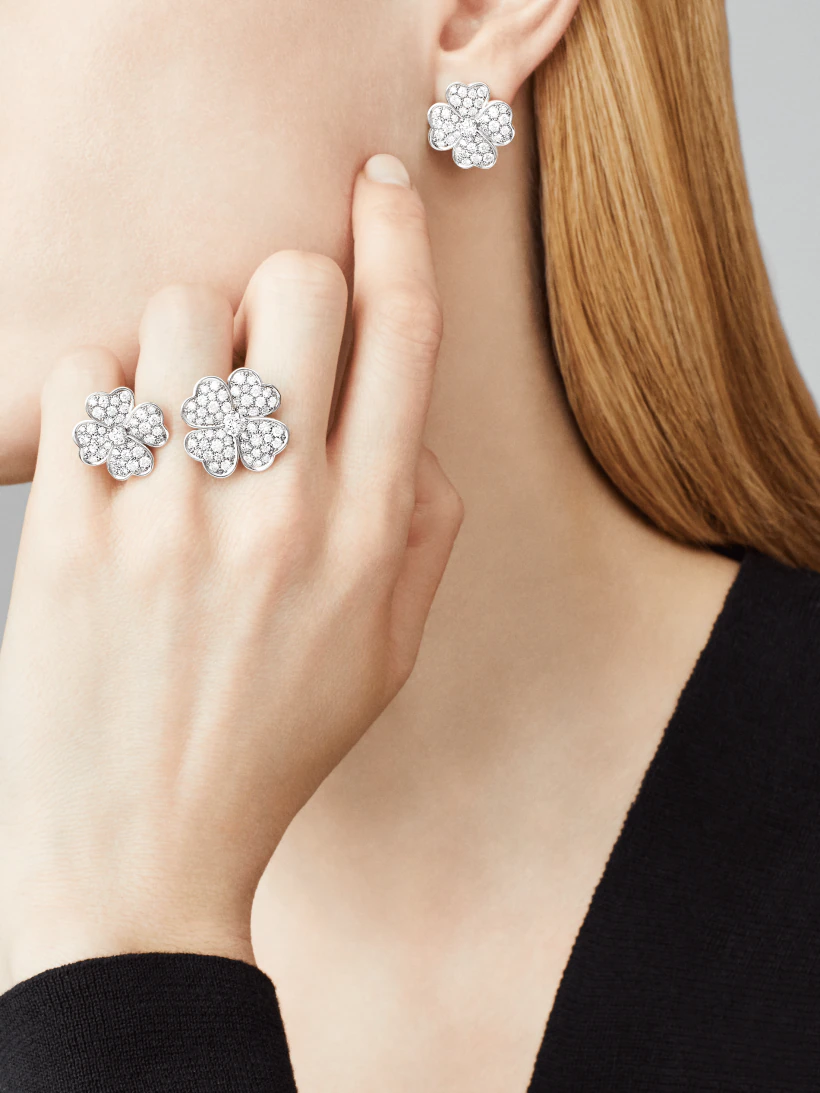 4枚のハート型の花びらからなるコスモス コレクションは、1950年代にヴァン クリーフ&アーペルが創作した、アイコニックな花のジュエリーから着想を得ています。自然そのものを描写したようなデザインが、みなぎるような躍動感を与えています。