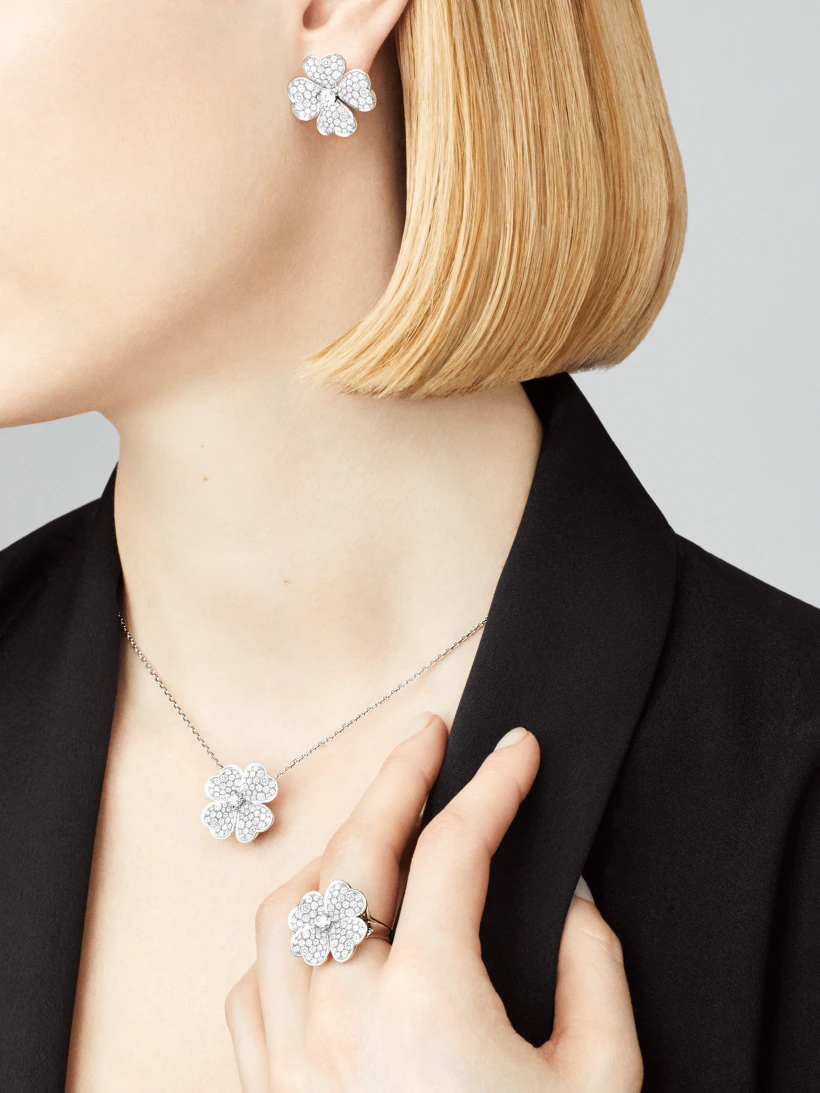 4枚のハート型の花びらからなるコスモス コレクションは、1950年代にヴァン クリーフ&アーペルが創作した、アイコニックな花のジュエリーから着想を得ています。自然そのものを描写したようなデザインが、みなぎるような躍動感を与えています。