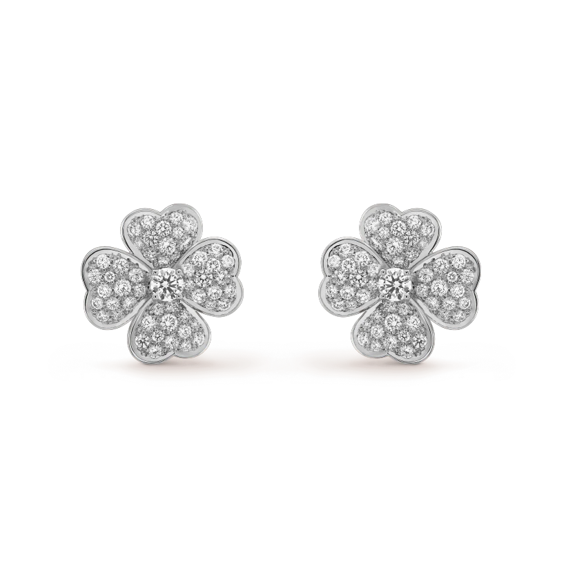 コスモス イヤリング、ミディアムモデル、ホワイトゴールド、ラウンドカット ダイヤモンド カラー:DEF、クラリティ:IF~VVS