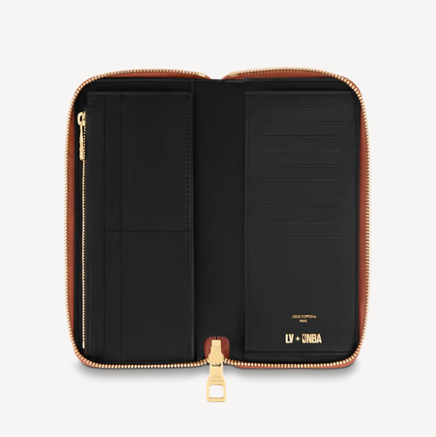 ボール・グレインレザーで仕立て、NBA公式ロゴのスポーティなパッチをあしらった「ジッピーウォレット・ヴェルティカル」。「LVxNBA」カプセル・コレクション第2弾の1つです。エンボス加工を施したグレインレザーのアイテムのファスナーを開くと、スロットやポケット、ファスナー開閉式コンパートメントなどの機能的な内装が現われます。