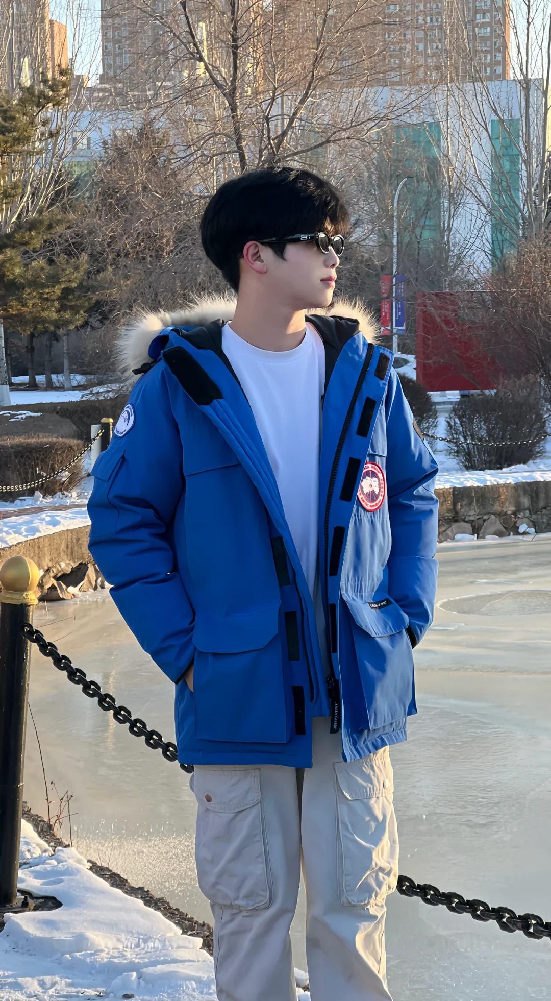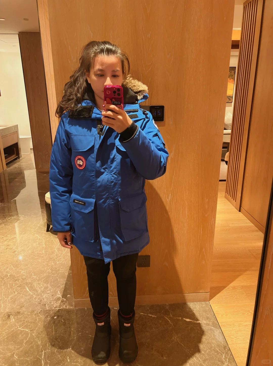 取り外し可能で調節可能なフードと、シェーピングスチールリング付きのファーカラーが強力な防風効果を発揮