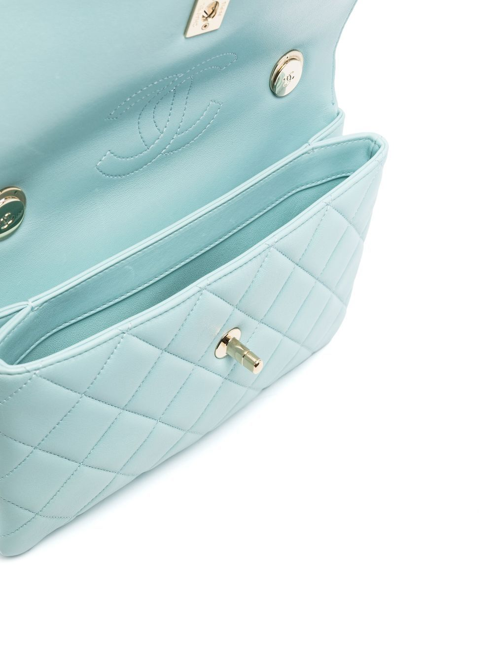 ライトブルー ラムスキン ダイヤモンドキルティング ゴールドトーンのロゴプレート レザー&チェーンストラップ フロントにフラップ式開閉 ココマーク ターンロック式開閉 メインコンパートメント 内側にココマーク バックにスリップポケット ゴールドトーンの金具。高品質の印付き。こちらの商品には Chanelのギャランティーカードが付属します。専用のダストバッグが付属しています。【コンディション:非常に良好】こちらの商品は目立った使用感やダメージがなく 新品に近い状態です。エシカルコンシャス:新しい資源を用いないプレオウンド商品のご購入が 環境問題への取り組みに繋がります。