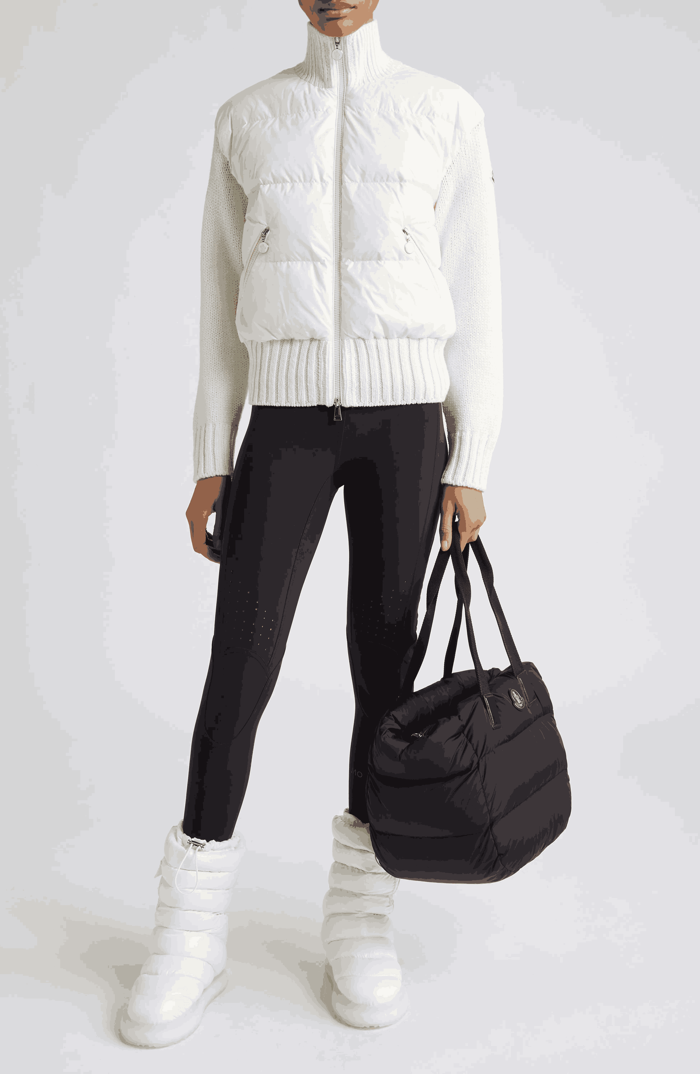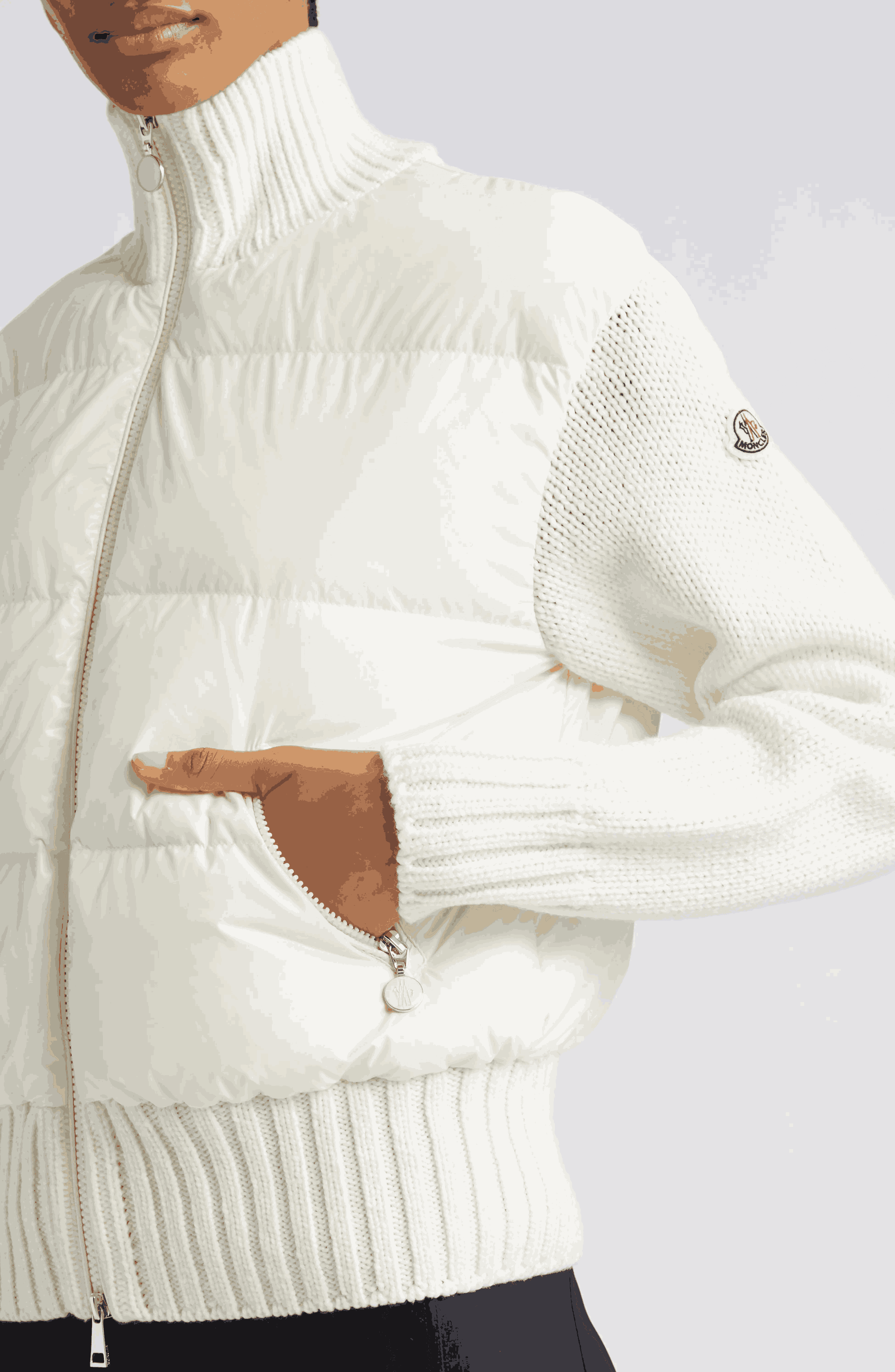 Moncler Mixed Media Quilted Down Cardigan