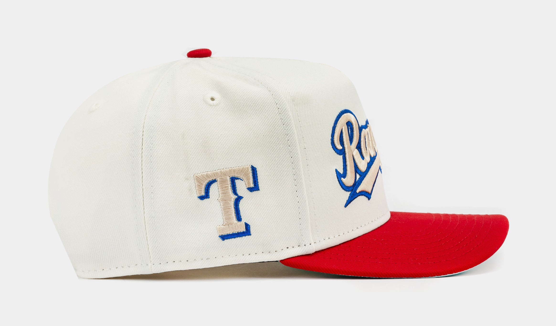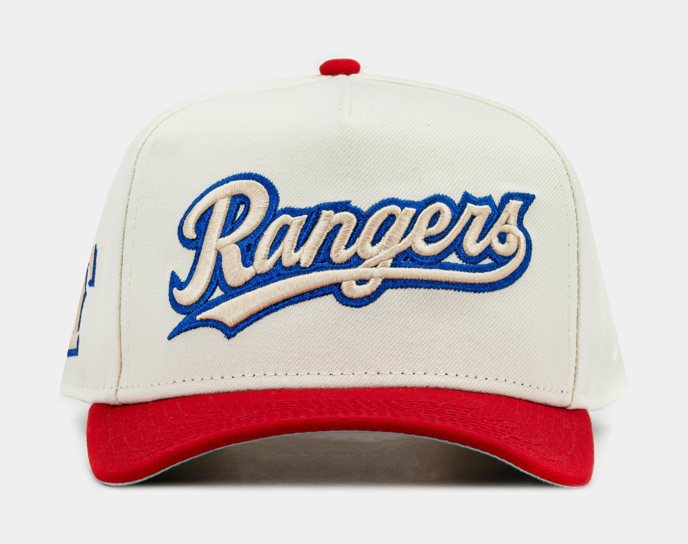 The Shoe Palace Exclusive Texas Rangers 950AF Snapback Men's Hat in vibrant white & red is a standout accessory for any fan. Featuring the iconic Texas Rangers logo embroidered on the front, this cap combines team pride with stylish design. Its adjustable snapback closure ensures a comfortable fit for all-day wear.