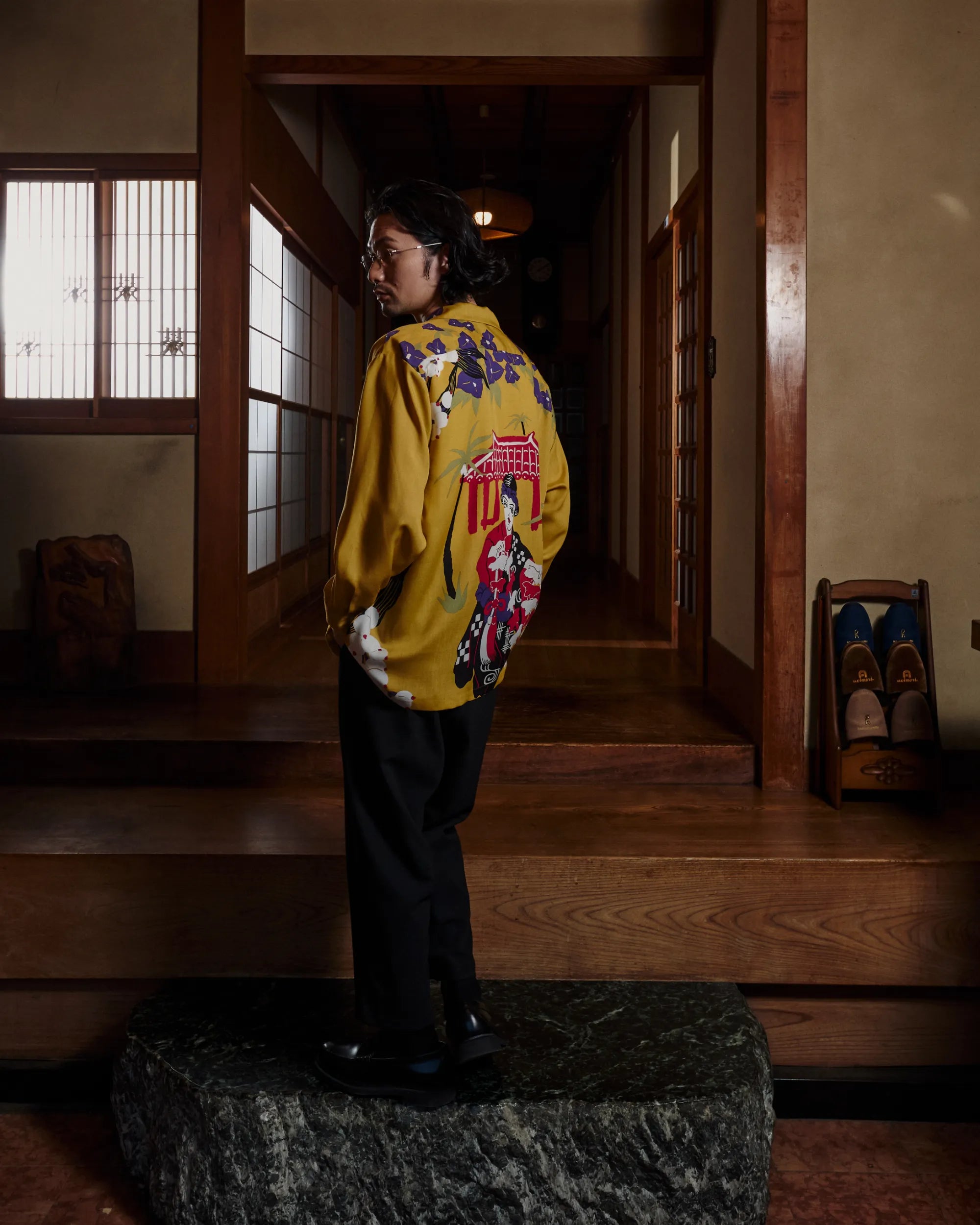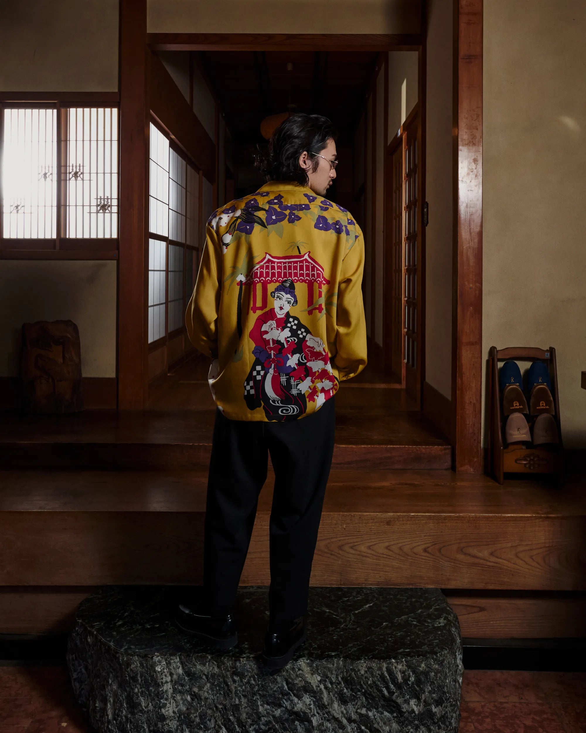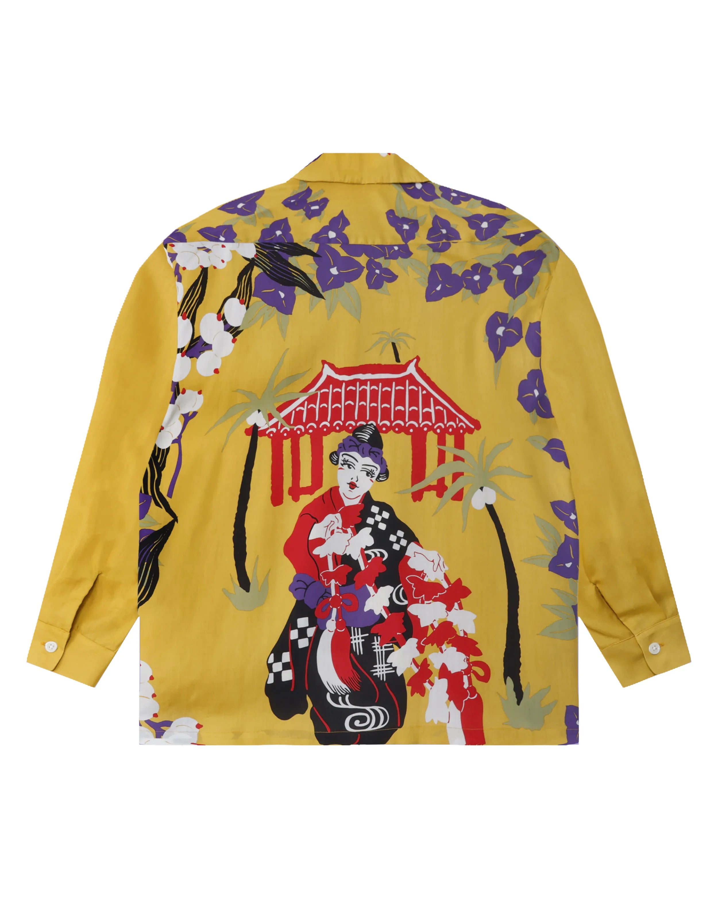 沖縄の「文化・自然・心」をアロハで表現するシリーズ「RYUKYU COLLECTION」2作目が、長袖になって再登場。 沖縄の伝統芸能「琉球舞踊」をテーマに、踊り子のイラストを背面にプリントしたバックパネルパターンのアロハシャツ。